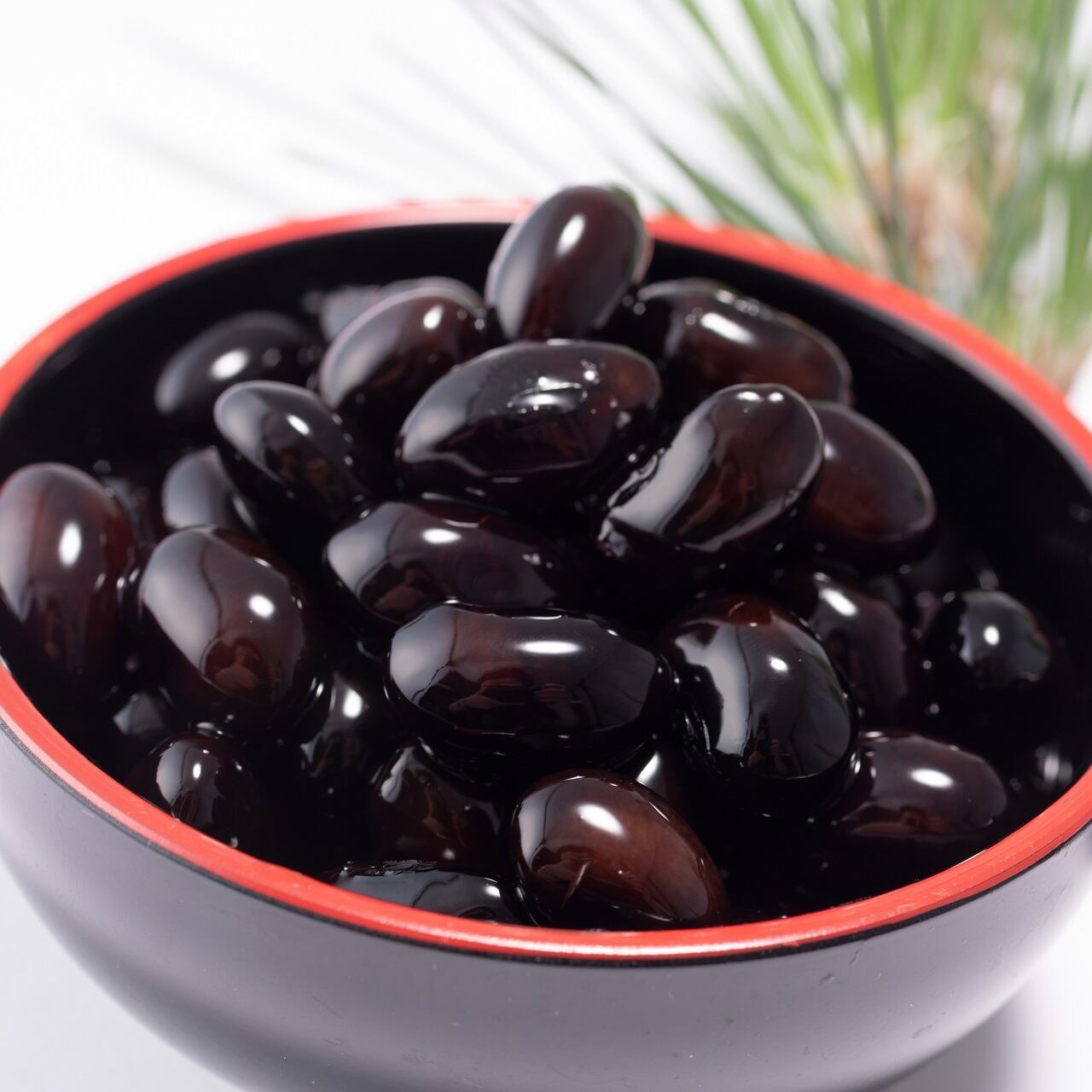 お正月食材として定番の黒豆。京丹波町特産の丹波黒大豆は、つやのある大粒、コクと旨味が凝縮された濃い味わいがあり、荷崩れしないのが特徴です。大粒の豆の表面の粉ふきは、豆に旨味がある証。粉が多いほど高級品として扱われます。炊き上がりのふっくらとした大粒のもちもち食感と旨味の濃い豊かな味わいをぜひ、お楽しみください。